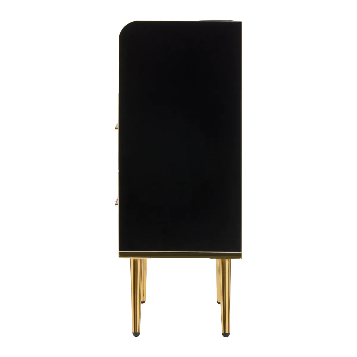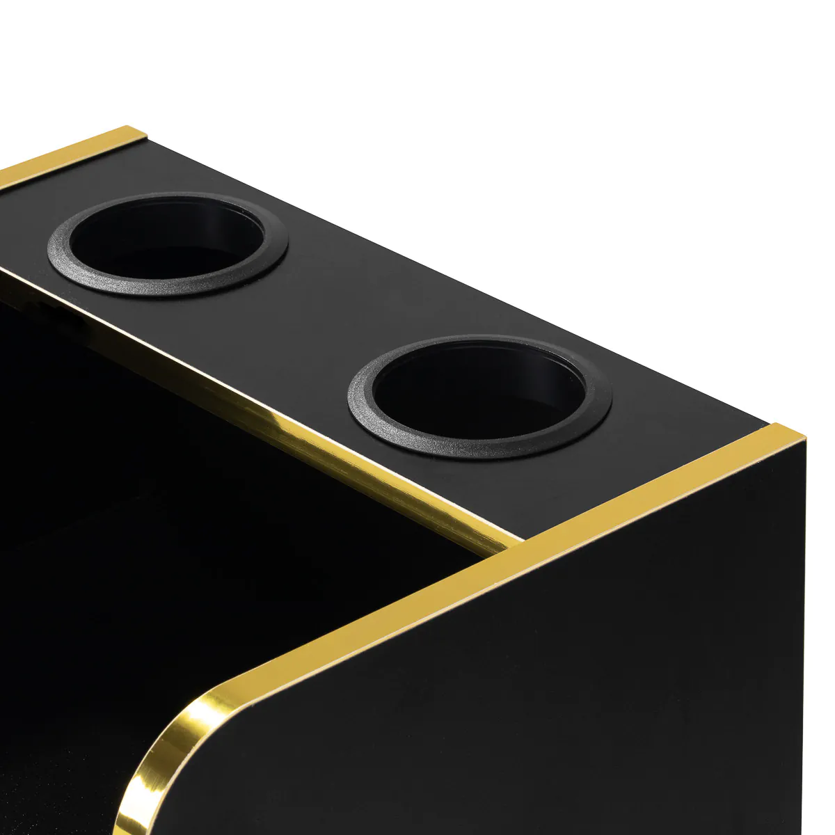 Los elementos metálicos pulidos en tonos de oro y una construcción de panel de madera maciza en tonos de negro resaltan la elegancia del interior.