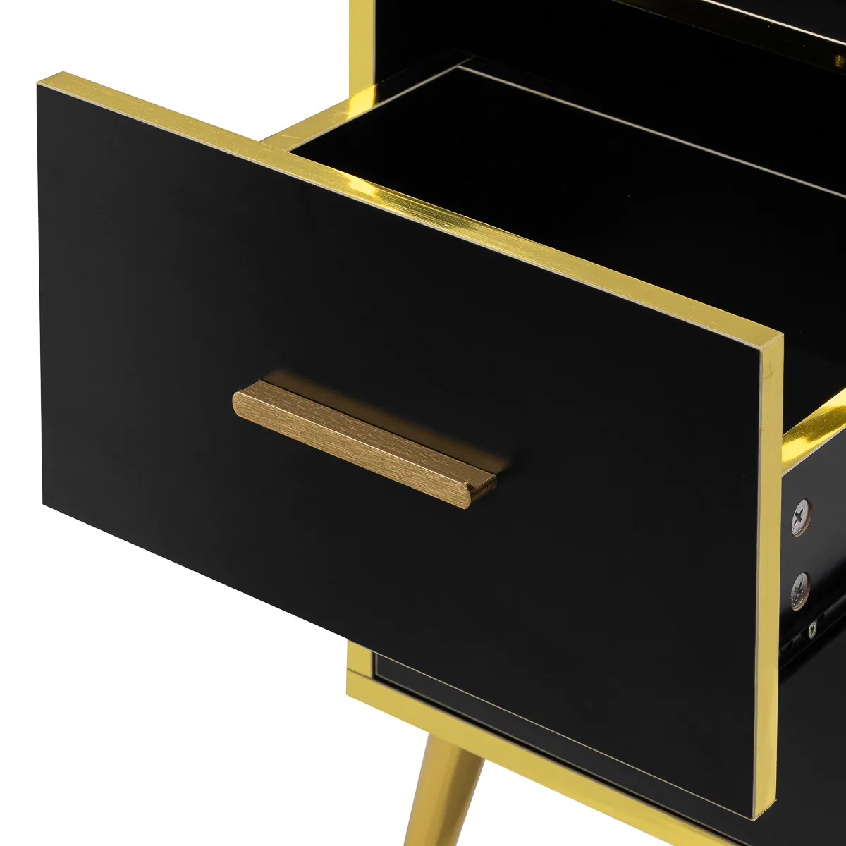 Las patas doradas no solo agregan estilo, sino que también facilitan mantener la unidad limpia debajo, lo cual es esencial en cada salón profesional.