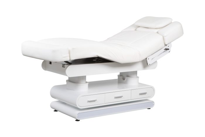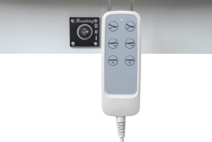 Camilla de SPA con calefacción de 4 motores que regulan la altura, el respaldo, el reposapiés y la inclinación total con máxima suavidad y silencio.