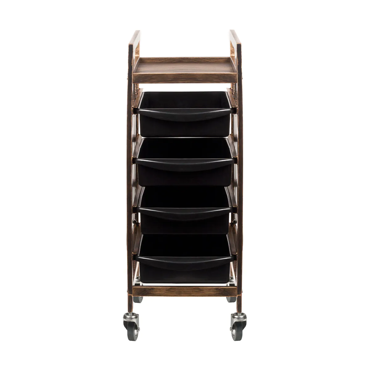 Asistente de peluquería vintage color oro envejecido, con 4 bandejas, ruedas silenciosas y soporte secador.