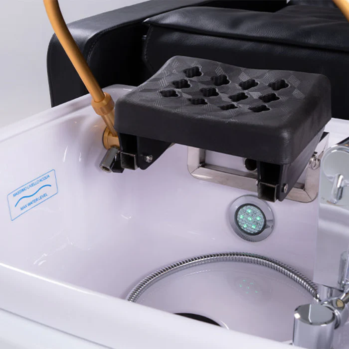 Lavacabezas eléctrico, sistema completo de Spa capilar con vapor, cascada, cromoterapia y puerto USB. Diseño profesional, reclinable, funcional y elegante.