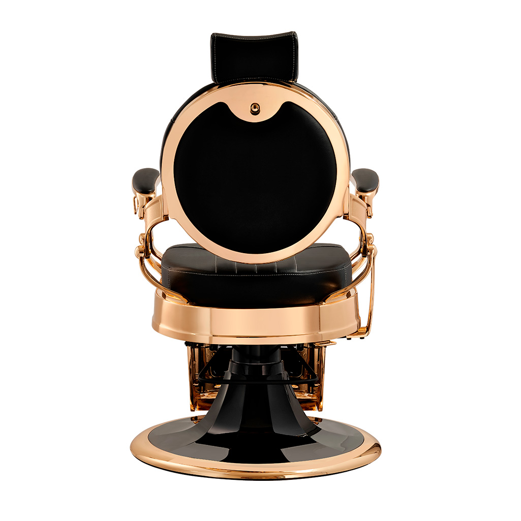 Sillón de barbería elegante, con un chasis completo metálico de inyección de aluminio.