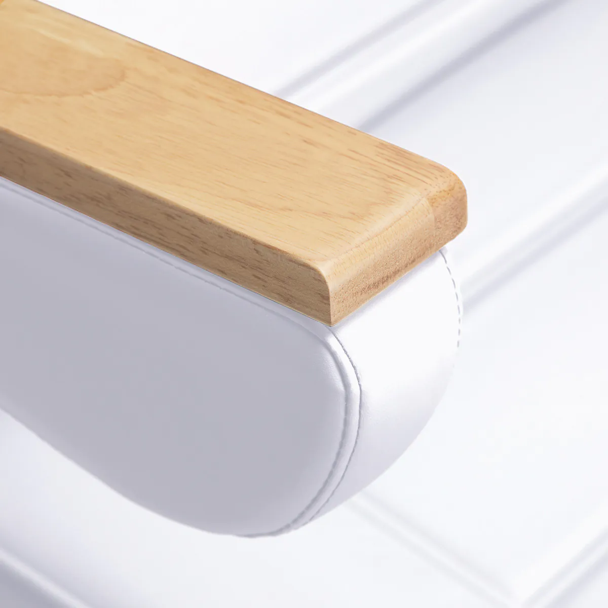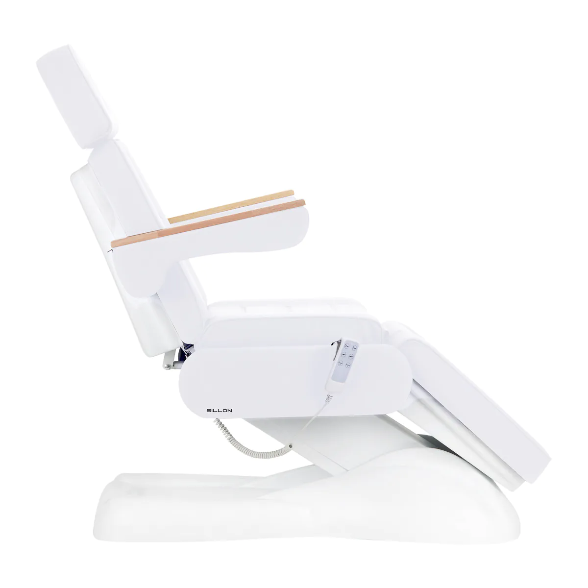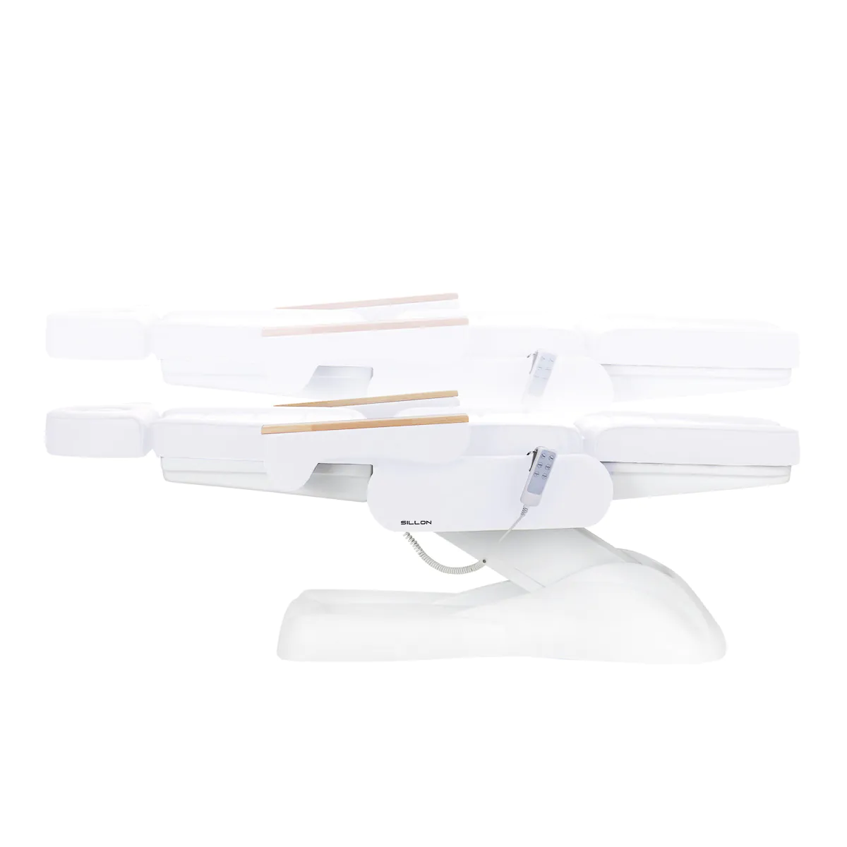 El equipo se puede desplegar libremente a la posición del sofá, que, combinado con el orificio en el reposacabezas oculto debajo de la tapa, aumenta significativamente su funcionalidad para los servicios de cara y cuerpo.