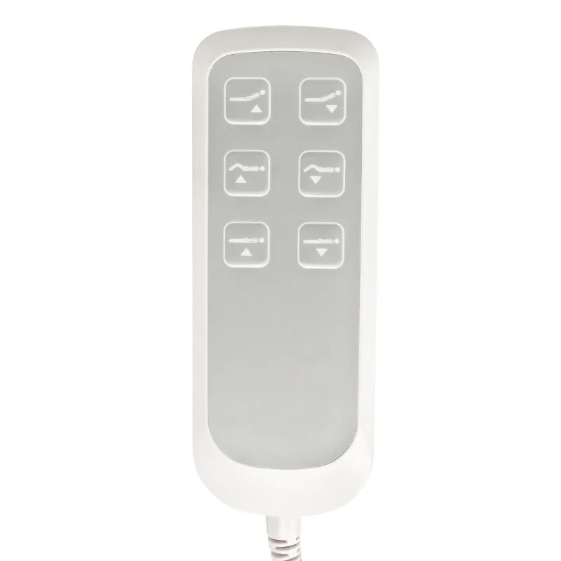 Equipada con 3 actuadores controlados por control remoto mediante cable, permite un ajuste suave en tres planos: Altura y ángulos ajustables del respaldo y el reposapiés.