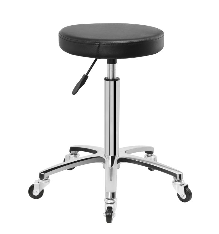 Práctico taburete de diseño ergonómico con asiento plano y circular.