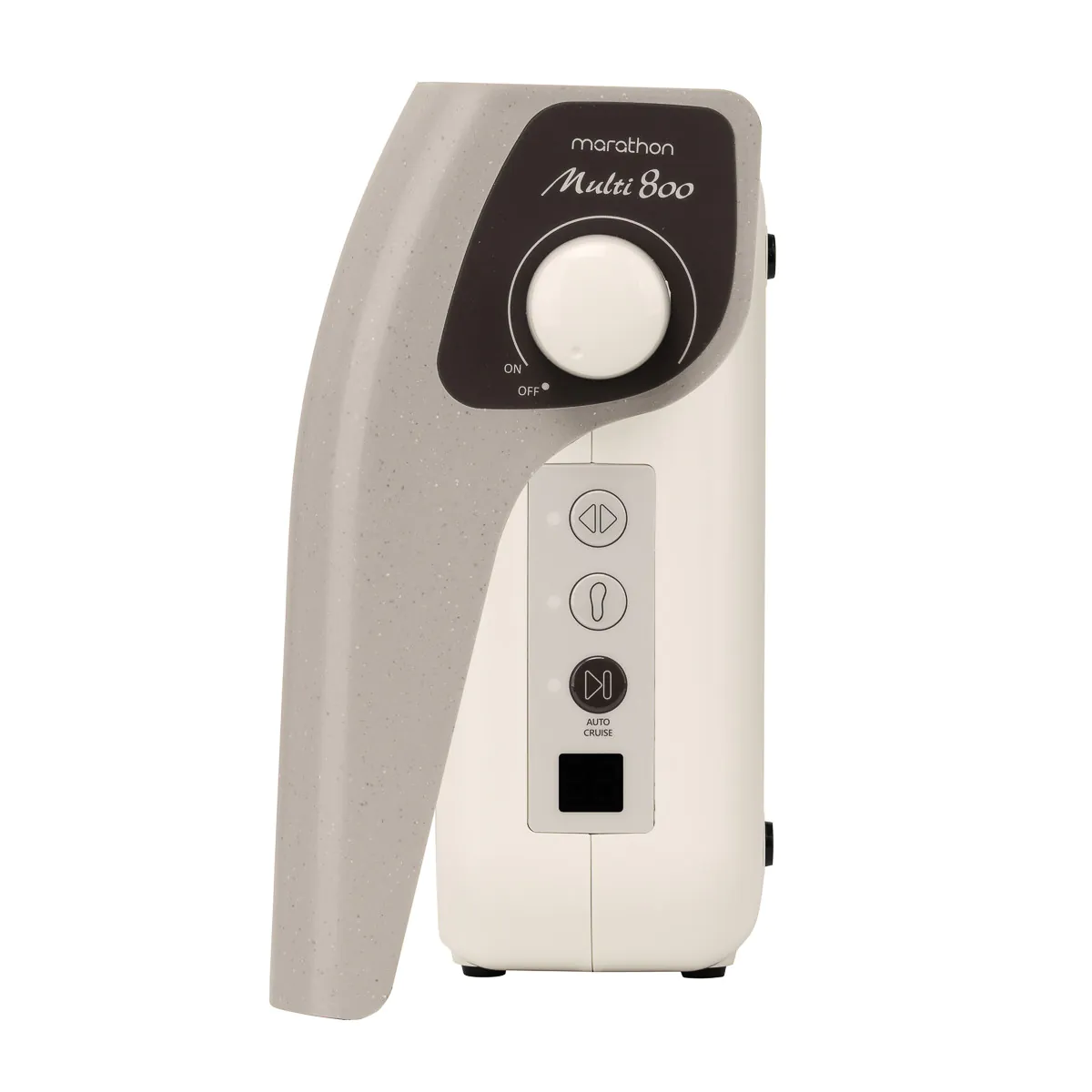 Dispositivo moderno. El torno Saeyang Marathon MULTI800 combina funcionalidad y estética, satisfaciendo las expectativas de los profesionales más exigentes. Con una carcasa futurista en tonos beige y marrón, bordes redondeados y acabado mate, es duradero y fácil de mantener limpio. Además, cuenta con pies de goma para mayor estabilidad y para proteger la superficie contra arañazos. Un elemento elegante para cualquier salón de belleza.